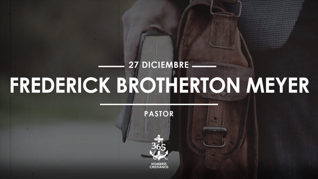 27 de diciembre. Frederick B Meyer. En esta fecha de 1865, Frederick esbozó su concepción de la fe. Para 1870, estaba pastoreando su primera iglesia. Hacia 1878, fundó una iglesia, que pastoreó durante diez años. También fue amigo de DL Moody y ejerció su ministerio en Estados Unidos, a menudo centrado en la labor misionera en los barrios pobres.